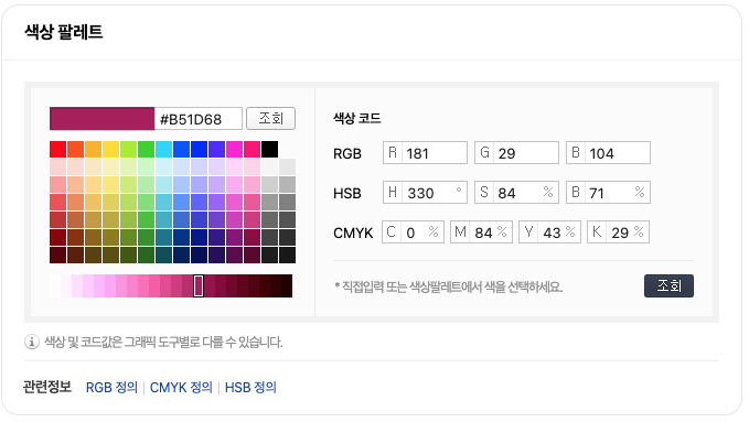 직접 팔레트에서 선택, 코드를 복사해 오는