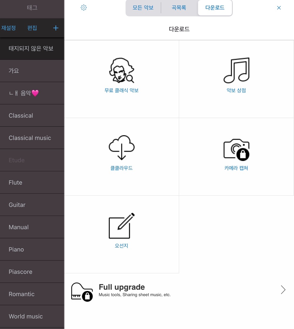 악보 사이트에서 구매 후 저장한 악보를 열어보는 것은 물론