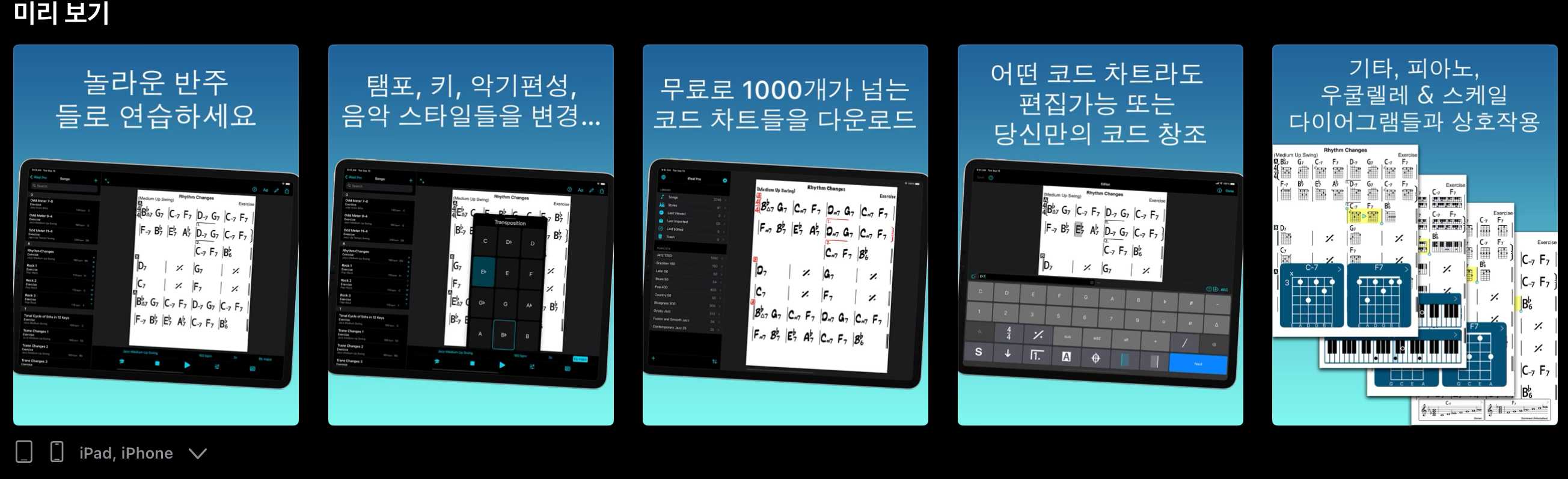 건반, 기타 등등 뮤지션을 위한 코드와 반주 재생 프로그램