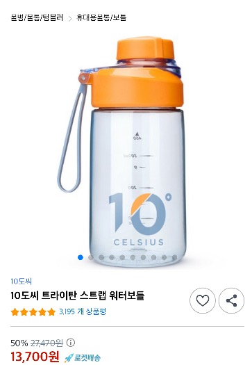 현재 별점 4.7점, 리뷰 3195개를 가진 10도씨 트라이탄 스트랩 워터보틀! 지금 쿠팡에서 더 저렴하고 다양한 휴대용물통/보틀 제품들을 확인해보세요.